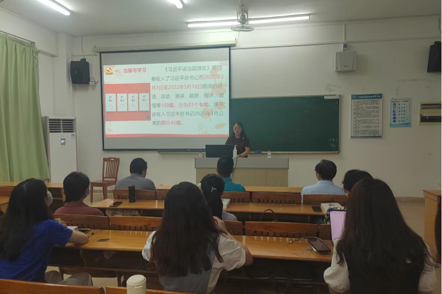 为贯彻落实《中共广东省委教育工委关于开展〈习近平谈治国理政〉第四卷学习宣传贯彻工作的通知》和学校党委关于深入学习宣传贯彻《习近平谈治国理政》第四卷的通知等文件要求,星空XK官网于9月29日下午在第四教学楼209开展“《习近平谈治国理政》第四卷与全面建设社会主义现代化国家”专题讲座,学院全体教师党员参加了活动,讲座由校党委理论学习讲师团成员梁利珍教授主讲。