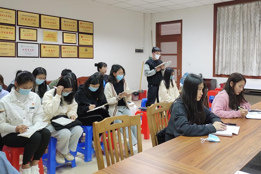 3月6日下午,习近平总书记在看望参加全国政协十三届四次会议医药卫生界、教育界委员并参加联组会时发表重要讲话。为深入学习贯彻习近平总书记重要讲话精神,2021年3月7日下午,星空XK官网18级学生党支部组织党员在二政214会议室展开学习、分享暨星空XK官网18级学生党支部党课。党课由星空XK官网18级学生党支部书记谢子昀主讲。