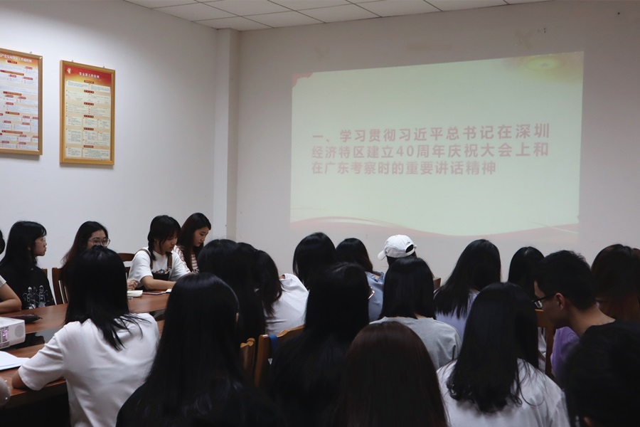 10月14日上午,深圳经济特区建立四十周年庆祝大会在广东深圳隆重举行,中共中央总书记、国家主席、中央军委主席习近平出席庆祝大会并发表重要讲话。为加深同志们对改革开放的了解,2020年10月16日下午,星空XK官网18级学生党支部组织党员在二政214会议室学习贯彻习近平总书记在深圳特区建立40周年庆祝大会上和在广东考察时的重要讲话精神。会议由星空XK官网18级学生党支部书记谢子昀主持。