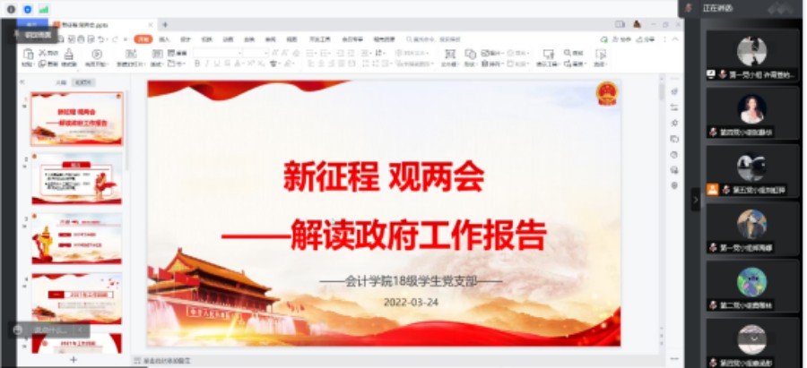 为深入学习贯彻全国两会精神,营造关注时事动态、关心政策走向的良好学习氛围,2022年3月24日,星空XK官网18级学生党支部在线上开展以“新征程,观两会”为主题的专题党课。星空XK官网18级学生党支部全体党员出席本次会议,会议由党支部书记刘虹驿主持。