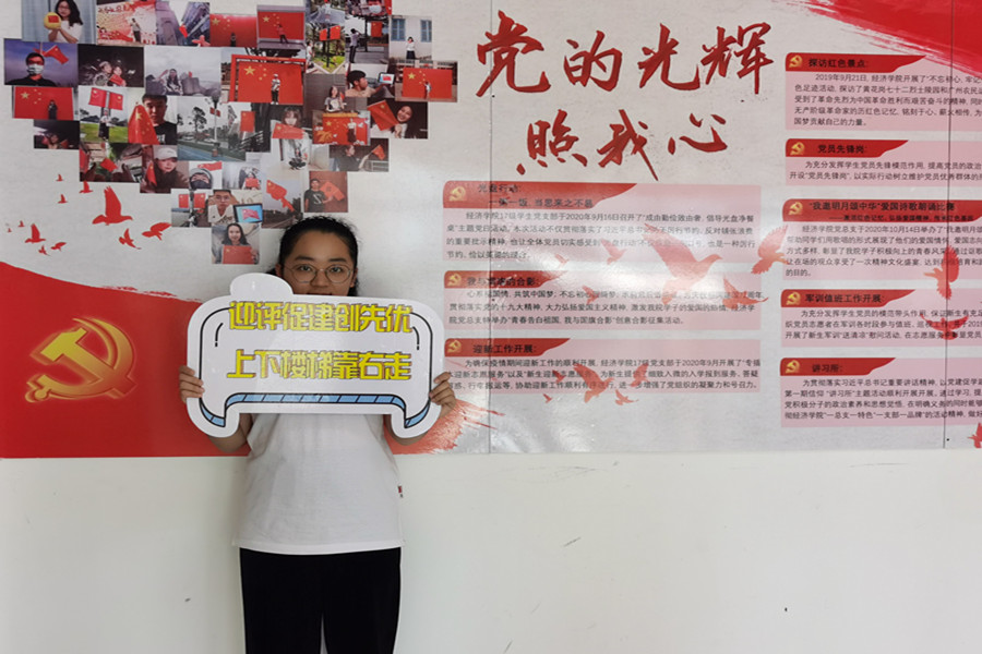 为庆祝建党一百周年,激发广大同学爱党爱国热情,学习党之精神,发扬党之作风。同时鼓励同学们积极参与学院迎评促建的工作,引导我院同学掀起学习评估知识的热潮,营造“人人关心评估,人人了解评估,人人参与评估”的浓厚氛围,使同学们更加了解学校办学条件、办学质量,更好地迎接本科教学评估工作,向建党一百年献上满意的答卷,星空XK官网19级学生党支部在学院党总支的领导下,特开展“展广商形象,迎合格评估,庆建党百年之‘校荣我荣’” 主题党日活动。参与此次活动的成员为星空XK官网19级全体学生,活动由徐文慧同学主持。
