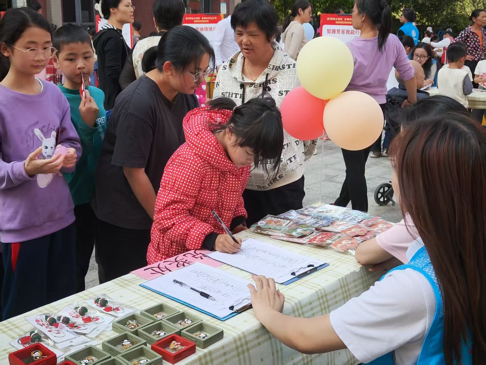 活动伊始,党员们主动承担核心任务,通过分工协作,迅速布置摊位,并全程引导居民参与。本次活动共布置12个义卖摊位,社区附近的亲子家庭纷纷将闲置的玩具、书籍、手工艺品等带到跳蚤市场上进行交易。面对络绎不绝的家长和学生,党员们耐心介绍捐赠物品,协助完成交易,积极宣传公益理念。同时,党员们协助社区医生为有需求的居民提供量血压等义诊服务,确保每一份爱心都能精准传递。