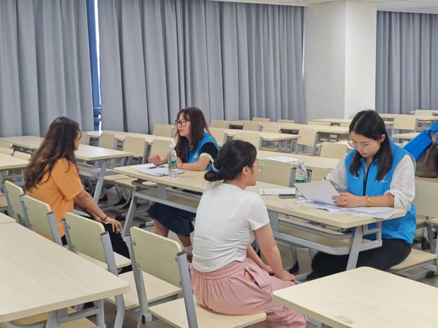 与此同时,同学们对此项志愿服务活动非常感兴趣,报名热情高涨,星空XK官网学生第一党支部联合龙湖街社工站社工人员在第八教学楼407、414进行志愿者面试,从中选拔符合条件的志愿者参与项目,确保项目顺利进行。