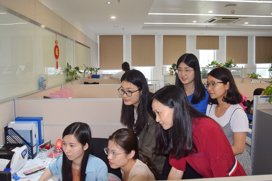 成慕杰一行考察学生实习的工作环境,并与正在实习的2014级学生进行交流。中联控股集团深圳公司总经理张顺和、华润三九财务共享运营总监孙星亮、人力资源总监王烨等出席座谈。会上,成慕杰介绍学院的发展情况和人才培养情况,并分别对中联公司和华润三九长期以来关心指导学院实习生的成长,支持学院的人才培养工作表示感谢。用人单位对我院实习生的工作表现给予了高度评价,并从企业的角度对我院的人才培养方案提出建议。同学们向学院领导汇报自己的实习工作情况,并表示将继续努力,不断提升自己。成慕杰肯定同学们认真工作的态度,赞扬同学们取得的进步,希望同学们在未来的工作中继续勤奋努力,圆满完成实习任务。