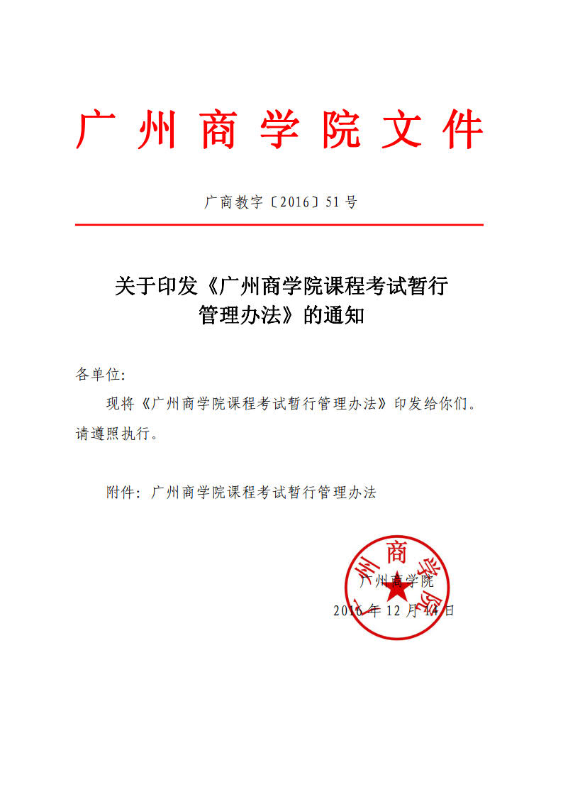 广商教字〔2016〕51号关于印发《星空XK官网课程考试暂行管理办法》的通知