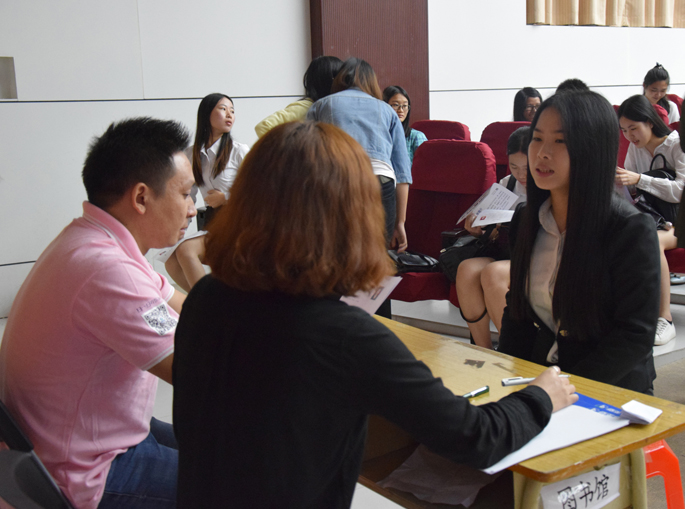 宣讲会上,定雄武首先介绍了佰平教育集团是以广东佰平人才培训有限公司为主体,以培训会计专业证书应试教育、会计职业技能的华南地区第一大培训机构,并就公司篇、认识篇、招聘篇、福利篇等四个部分详细介绍了企业的情况,并就此次招聘岗位进行了说明。同时,定雄武还表示佰平教育集团始终坚持以“服务”为核心、创新理念、强化意识、打造品牌,强调企业卖的不是产品,而是文化。通过不断创新,贯彻“人无我有,人新我变”的策略,成为培训行业的标杆。最后,定雄武希望我院毕业生能明确自身的定位,更好地展现自我,实现自己的人生价值。宣讲结束后,直接进入招聘的面试环节,佰平教育集团工作人员直接在图书馆报告厅的现场招贤纳士,进行第一、二轮的面试,现场秩序井然