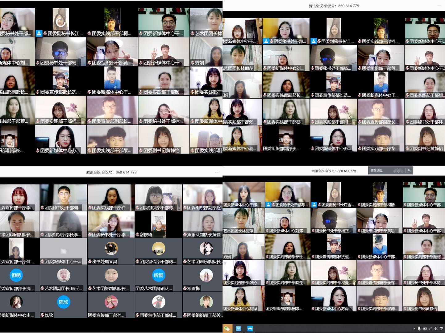 为加强我院团委学生干部队伍建设,提高学生干部工作能力和工作效率,及时反省、自纠工作问题,促进基层共青团工作在今后各项工作顺利开展,传承和发扬团委的优良精神,星空XK官网团委于2020年6月18日晚借助腾讯会议平台举办了星空XK官网团委2019-2020学年总结大会。出席本次总结大会的嘉宾有星空XK官网团委书记廖秀娟,辅导导员陈欣、邓雪梅老师,16级毕业生谢桉琦师姐。本次总结大会由团委秘书处干部陈溯雨主持。