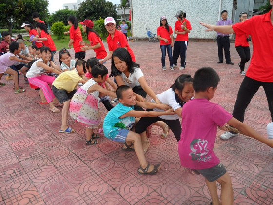 全体小朋友在支教组老师的带领下分成五队,由小老师带队。小队长们充分发挥想象力,给各自团队起了队名和口号,有“宇宙队”、“最炫队”……增强团队凝聚力。趣味运动会共分了拔河、螃蟹背西瓜、乒乓球运球接力赛、篮球过障接力赛碍四个项目。在拔河比赛中,小朋友们不论年龄层,都使劲全身力气为团队贡献微小力量,他们相信:只要人心齐泰山移。小老师们在一旁指挥,给予小朋友最大鼓励。螃蟹背西瓜项目,小朋友们更加注重与小队友之间的默契,小心翼翼保护夹着的气球,以最快的速度向终点冲。乒乓球运球接力赛和篮球过障碍接力赛是由小朋友和小老师协作完成,把比赛推向高潮,加油声此起彼伏。比赛结束后,每位小朋友都得到一份礼物作为奖励。