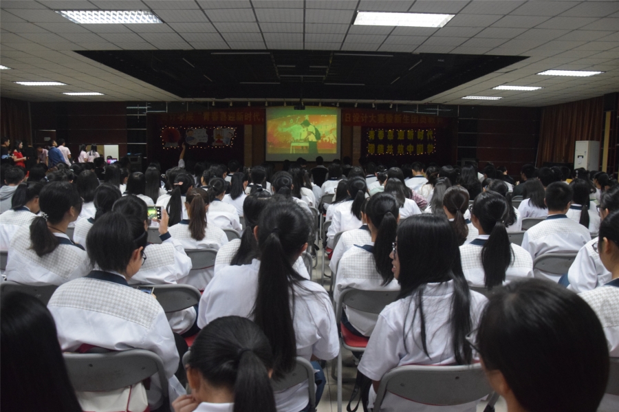 为深入学习贯彻党的十九大精神,引导青年团员树立远大理想,星空XK官网“青春喜迎新时代,团结共筑中国梦”团日设计大赛暨新生团员教育活动于11月2日晚在学校歌舞厅举行。参加活动有学院辅导员梁亮、张春娴,各二级学院团委干部及学院近200名青年团员代表。
