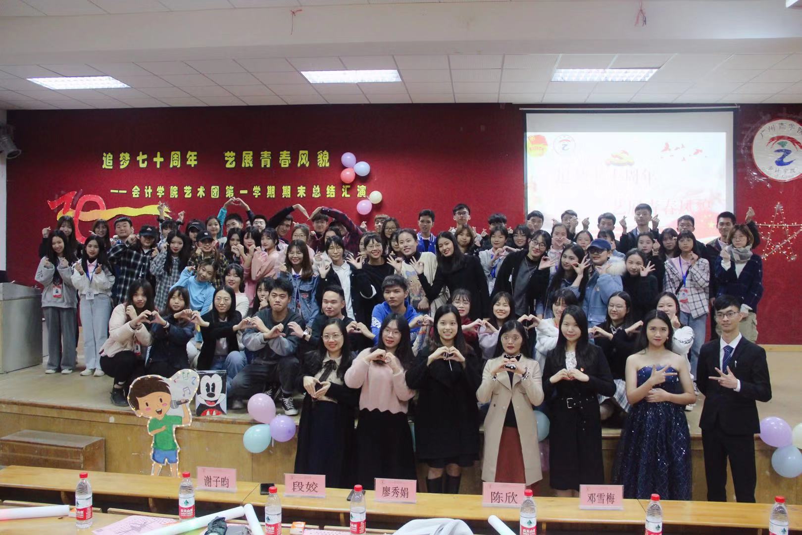 为庆祝中华人民共和国成立七十周年,展现星空XK官网师生的爱国热情,激发星空XK官网青春活力,星空XK官网艺术团于2019年12月19日晚在一教208举行“追梦七十周年,艺展青春风貌”为主题的期末总结汇演。莅临本次活动的嘉宾有星空XK官网团委书记廖秀娟,学生会指导老师张振华以及辅导员段姣、谢子昀、陈欣、邓雪梅老师。