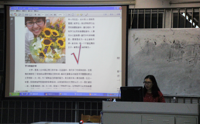 在培训会上,蓝乐钿分别对通知、请示、申请书、计划、总结、通讯稿六类常用公文文种做了介绍,并从各类公文的性质、功能、要素三个方面做了讲解。阐述了通知是一种上级对下级或同级发布的信息,起到知照事项、布置工作的作用。请示是一种下级对上级请求、指导或批准的主行文种,正文由请示理由、请示事项与结束语组成。申请书也是一种个人、单位向组织领导提出要求批示的文体。计划则是每项工作执行前使用的文体,蓝乐钿分享了活动进度计划表、学习进度表与课程表,鼓励学生干部要片段利用时间进行学习。她还强调总结应具有自我性、真实性、理论性、目的性,其正文应包括做法、体会、成绩、经验、问题、教训、努力方向等方面内容。而通讯稿则是通过第三人称对某事件进行客观报道,结构要完整,语言要简练。最后,蓝乐钿做了总结,希望学生干部们在工作中把六大文种运用好、要多写多练多改,更指出具有公文写作素养的人在工作岗位中会有更大的优势,应把文字变成个人的名片。