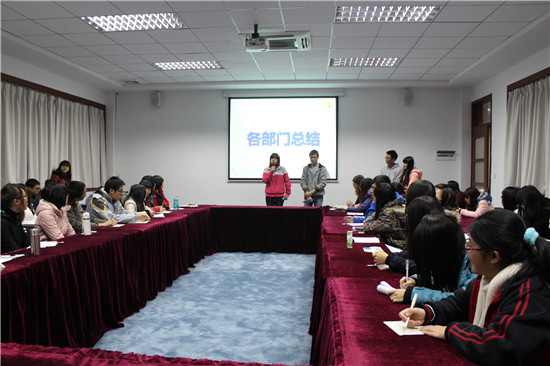 12月18日晚上6:15,会计系团委在第二行政楼308召开2013-2014学年第一学期总结大会。系团委书记蓝乐钿及团委全体干部参加了本次总结大会。