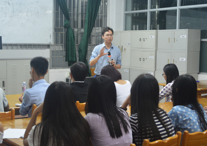 在培训会上,李锦堂从学生干部的定位与职责、学生干部的素质和能力、学生干部的相关制度三个方面内容进行了详细讲解。明确提出干部的职能是为了人才培养、科学研究和社会服务,并特别指出学生干部是提高学生思想政治教育、促进学风建设以及作为学生自我教育、自我管理的攻坚力量。对学生干部进行培训,一方面有利于各部门更好地开展工作,另一方面有助于培养更多社会活动家及新生力量。李锦堂指出各部门应梳理部门工作思路、注重创新;干部们应秉承三大工作理念:“分工不分家”、“在其位,谋其职”和“天道酬勤”。最后,他希望全体干部能在工作中努力实现组织的共同目标,为培养新一代应用型人才贡献出自己的力量。