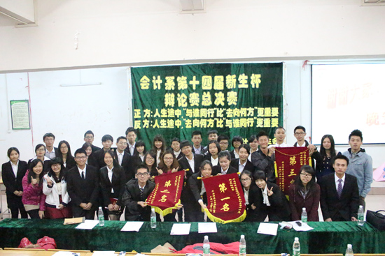 11月30日晚,会计系在A109举行新生杯辩论赛总决赛,会计系团委书记蓝乐钿、学院及各系辩论队队长、学院学生会、会计系三大学生机构干部观看了比赛。