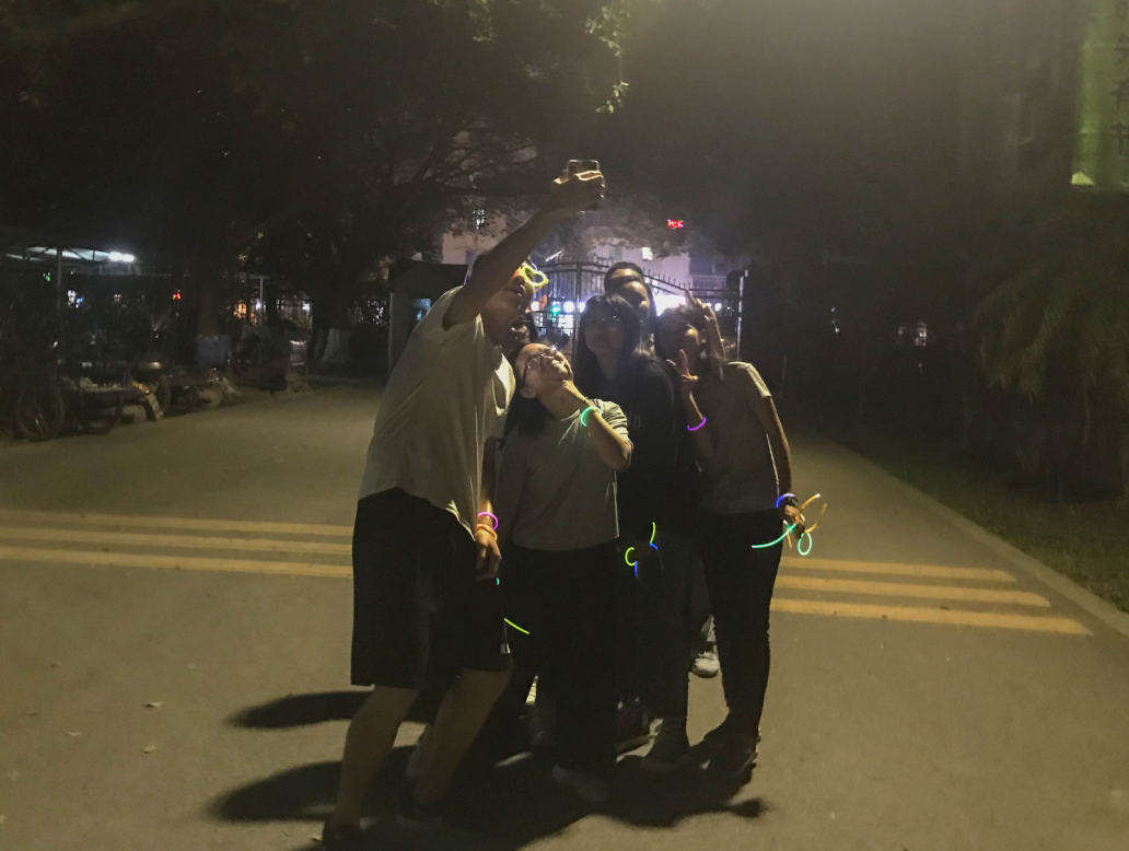 此次活动以团学部门为单位,由张振华老师领跑。众人先绕广商足球场跑一圈,然后跑至广商金贝子、广商中门、体育馆等指定地点进行打卡拍照方即可成功认证。活动开始,各部门在领取了荧光道具后,各种颜色的荧光棒汇成了一片彩色的海洋。全体团学干部先进行简单的热身运动,待开始的号令响起,开始了夜跑活动。