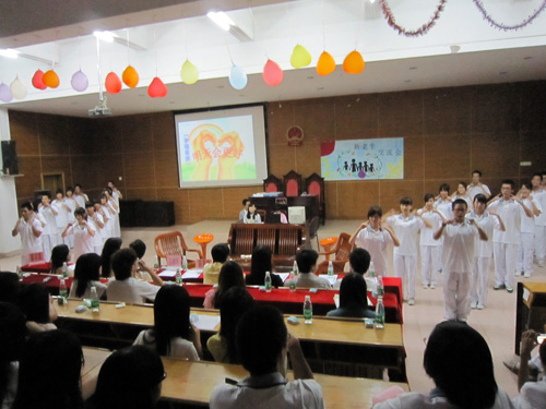 被邀请到台上与新生交流的07级袁野师兄、谭威师兄、张希师兄、罗丽嫒师姐以自身丰富的学习或学生工作经历为新生们解答“如何协调学习与工作的关系”、“大学中是不是应该谈恋爱”等令新生困惑的问题。过后,新生们就“如何预习”、“怎样做好班干”等问题踊跃发言提问,受邀的师兄师姐耐心地为他们解答,嘉宾们幽默的语言、有趣的故事令交流会现场气氛达到高潮。为表达对未来美好生活的憧憬,新生们特意准备了《明天会更好》的手语表演,以表他们珍惜时光的决心。最后,交流会在10级辅导员赠送纪念品、总结致辞中圆满结束。