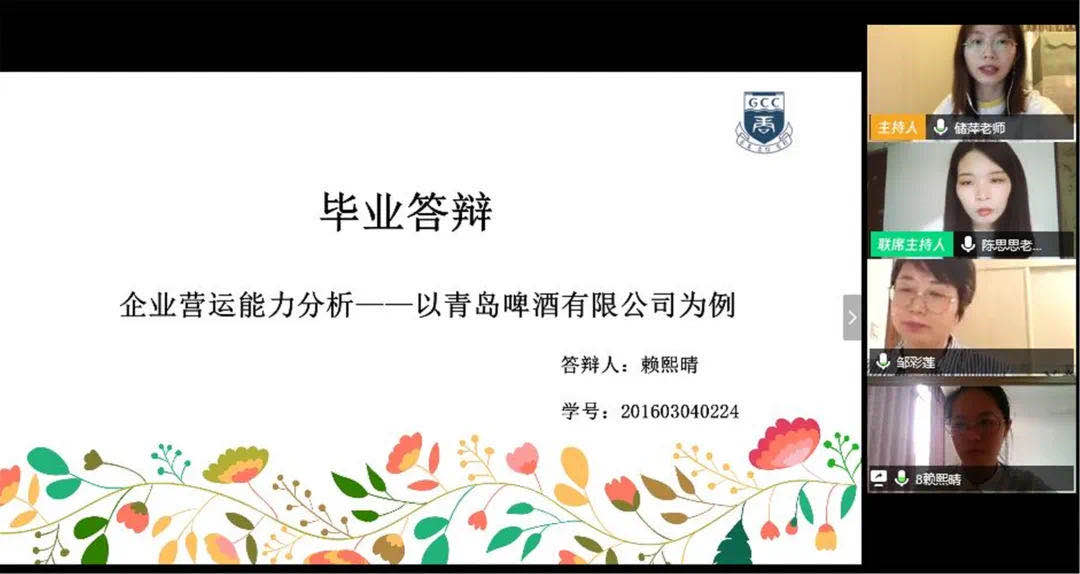 在答辩过程中,学生通过“屏幕共享”的方式对自己的毕业论文成果进行3分钟的展示和汇报,答辩专家们在仔细观看和听取之后,根据论文成果和汇报情况,与学生“连麦”进行提问。同学都能综合运用所学知识较为清晰准确地回答老师提出的问题,答辩情况良好。针对部分学生论文存在的格式、语言和逻辑等各种问题,答辩老师也一一提出了宝贵的修改意见。