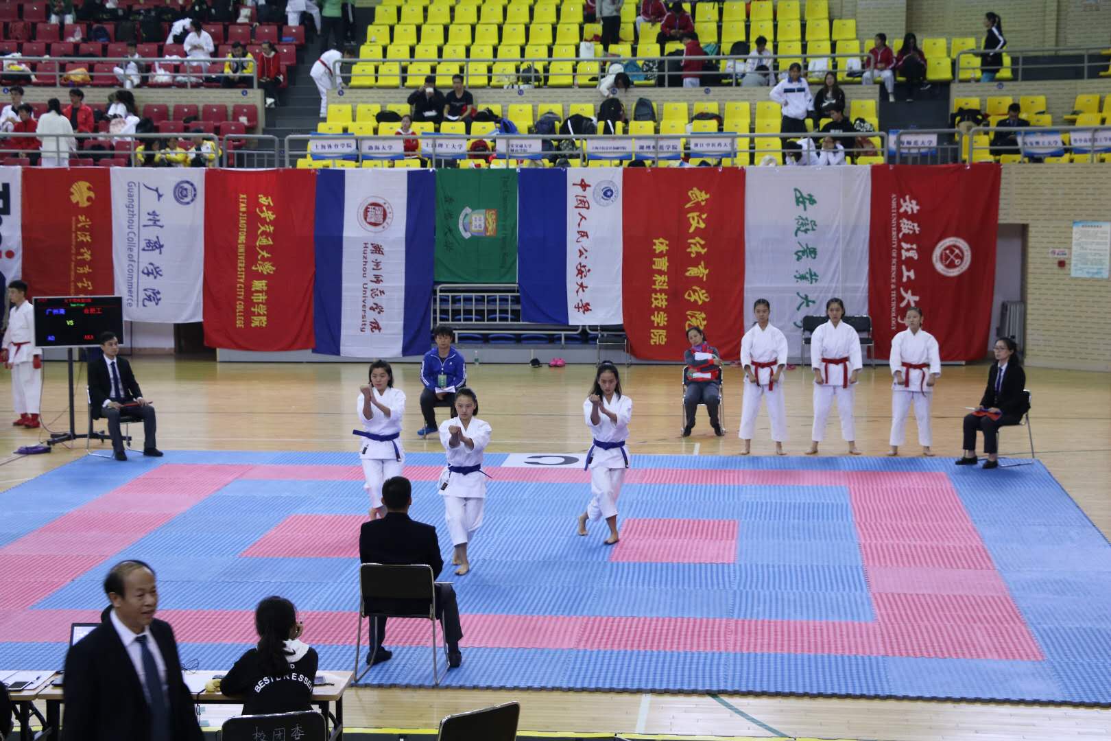 星空XK官网江丹、颜乔、李佳玲在第八届中国大学生空手道锦标赛紧张激烈的比赛中