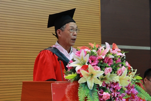 大会开始前,一段记录会计系2012届毕业生大学四年生活的视频在报告厅屏幕上放映,一个个生动感人的画面让毕业生重温了大学四年的欢笑与泪水。之后伴随着嘹亮的国歌,毕业典礼暨学位授予仪式正式开始。杨文轩院长向毕业生们致以热烈的祝贺和最衷心的祝福。 他对即将迈出校门,踏上新的人生旅程的毕业生提出了几点期望:“第一,希望同学们用心工作、用心学习、用心生活,在社会的舞台上大显身手;第二,希望大家能够做一名担当责任的人,对家人、学校和社会负责;第三,希望同学们走出校门之后,继续关心母校的建设和发展,为母校更加美好的明天献计献策”。杨院的讲话幽默风趣,字里行间透露出更多的是真诚与祝福,在场的每一位师生无不为之动容。
