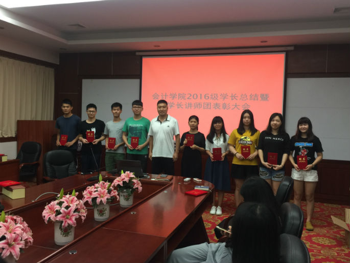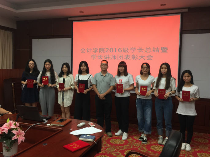 为总结2016级学长工作和表彰先进个人,传承学长精神,星空XK官网于2017年6月21日18:30在第二行政楼208举行了“2016级学长总结暨学长讲师团表彰大会”。会议由星空XK官网16级辅导员汤振华主持,16级辅导员梁亮、学长团、讲师团全体成员出席了大会。