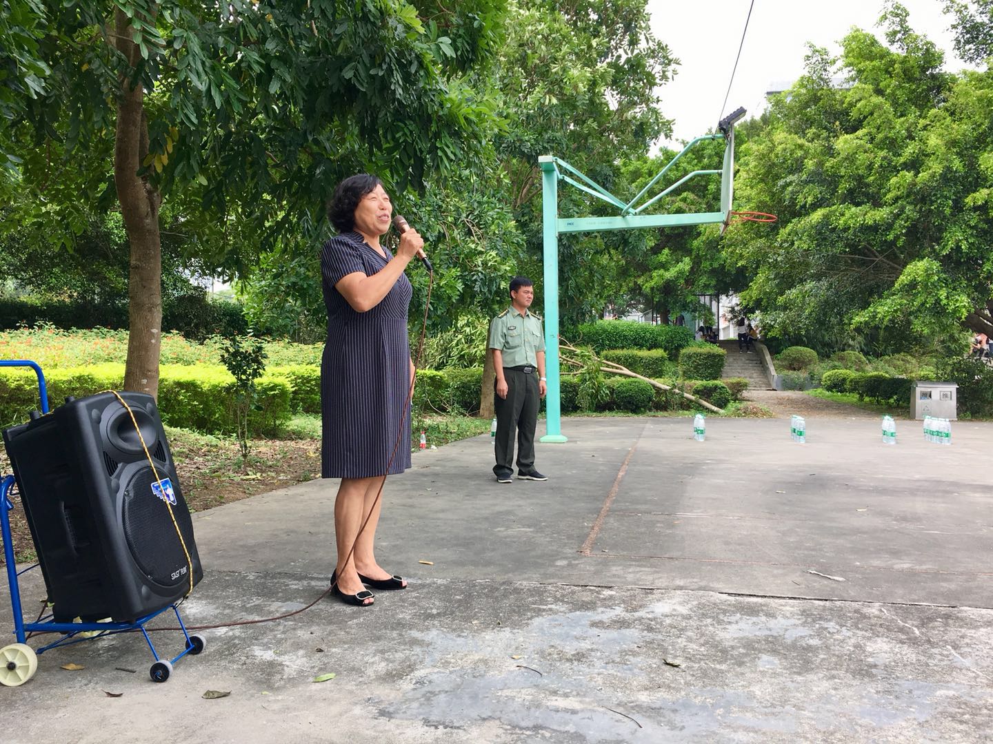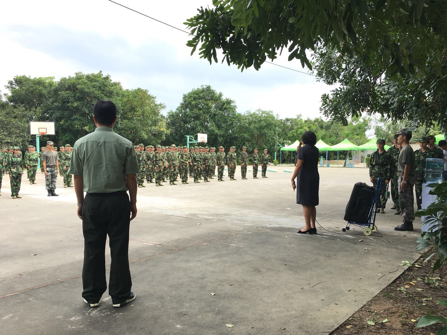 成慕杰与教官们进行了亲切的交谈,详细了解了参训新生的训练情况和进度,对全体教官这段时间付出的辛勤劳动表示了感谢,对同学们在训练场上表现出的良好精神风貌给予了充分肯定,她指出,军训是大学生生活的第一课,是同学们学习军队优良传统、培养艰苦奋斗精神的极好机会,也是大家磨练意志、提高修养、增强体质的实践课堂,它不仅仅是对我们身体的考验,意志的锤炼,品格的培养,通过军训有利于提高我们的组织性、纪律性,有利于增强我们的国防观念和增强战胜困难的信心和勇气,为将来建设祖国、保卫祖国打下坚实的基础,为圆满完成今年军训任务,对同学们提以下两点要求: