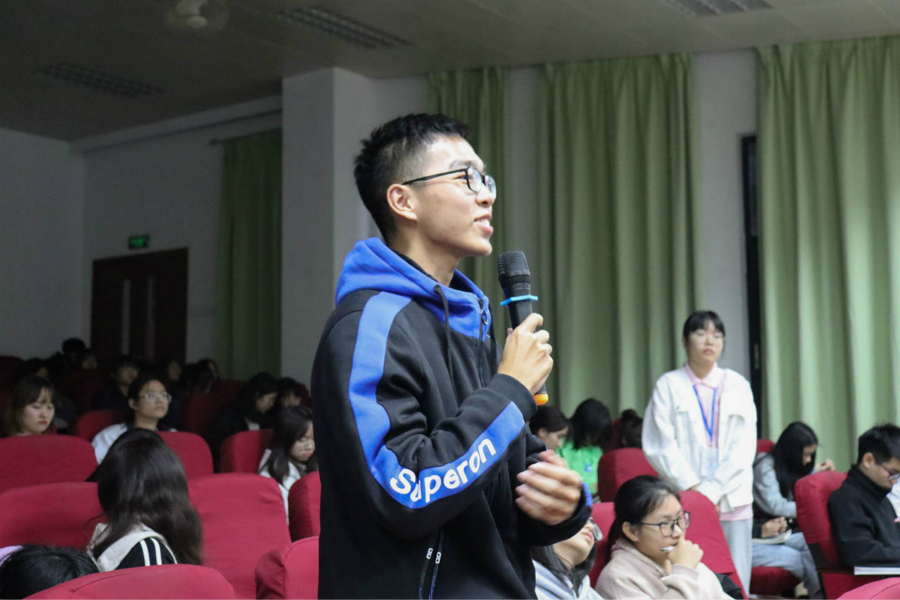 本次活动邀请了陈家莹与莫婉婷两位优秀学生进行分享。志愿类嘉宾陈家莹主要分享了自己的志愿经历,她将思路划分为:何为志愿、怎么去做志愿等几个部分。她以亲身经历表达了自己对志愿活动的理解,同时希望有更多同学投身到为人民服务的志愿工作中。文艺类嘉宾莫婉婷主要分享了自己的艺术之路,观众对她兼顾兴趣和学习的技巧感到十分赞同。此外,她以自己大四担任“ISO感光度摄影工作室”负责人的经历鼓励学弟学妹大学应该多尝试,勇敢迈出第一步。在观众提问环节,同学们纷纷向两位优秀学长提问“取经”,两位嘉宾耐心回答了同学们提出的问题,一位提问者表达:通过家莹学姐的回答,可以看出学姐是一位十分有爱心的人。