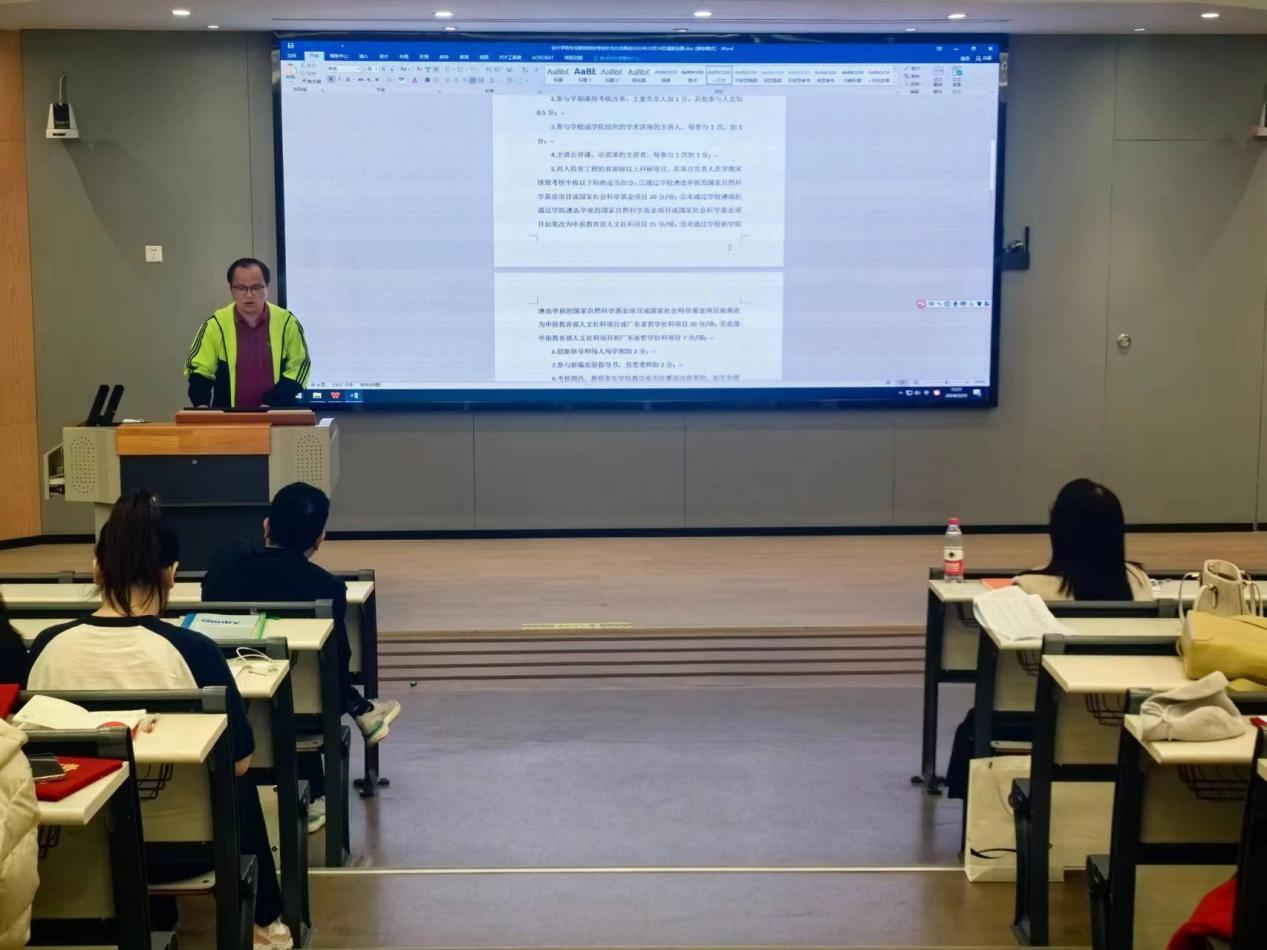 副院长陈德余就科研、毕业论文实习工作进行部署:一是2020级1384个学生,截至目前还有243个同学没有实习单位,要求各实习指导老师督促学生尽快落实实习单位,工作日在校友邦打卡和完成12周周志等。二是本学期将开启毕业论文答辩工作,要求老师们要重视并认真做好毕业论文指导工作。三是希望老师在新学期注意科研申请的各时间节点,再接再厉在新学年继续积极申报科研项目,在高水平论文写作、省部级及以上课题申报方面更上一层楼。
