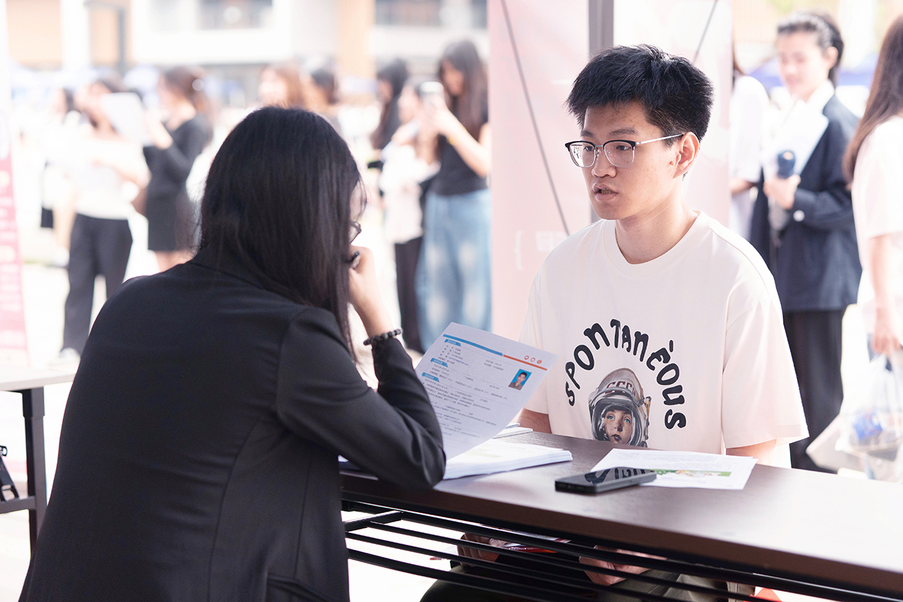 招聘会现场气氛热烈,学生参与热情高涨,2800余名在校生积极入场应聘。同学们手持精心准备的简历,在各个企业招聘展位间穿梭,认真细致地了解招聘信息,就工作中的发展空间等问题与用人单位深入交流,努力寻找既契合自身成长需求又符合专业特点的理想岗位。各用人单位秉持专业负责的态度,详细介绍单位的招聘需求、薪资待遇、职业发展路径、企业文化等关键信息,并针对同学们普遍关注的各类问题进行耐心细致地解答。经过现场高效洽谈,众多毕业生与用人单位初步达成就业意向。