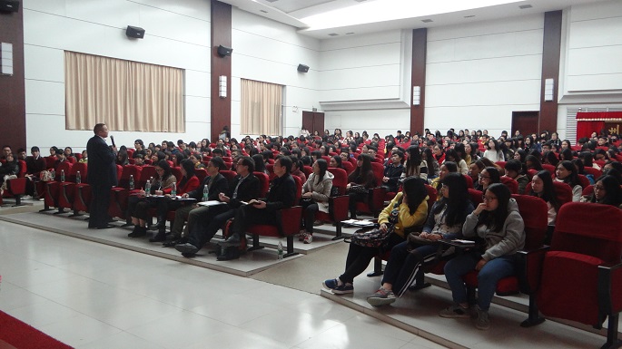 定雄武从专业意识开始,引用会计案例,引出讲座的内容:认知篇、心态篇、习惯篇和价值篇。在认知篇中,他分析了意识的特征,“自我认知”概念及表现,包括专业认知,自我认知。他认为学会计专业的学生要对数字敏感,要耐得住寂寞,学好会计,一是靠天赋,二是靠勤奋。在心态篇中,他认为人与人之间本身并无太大区别,其主要区别在于心态,通过身边的例子来说明“我们无法用相同的自己去得到不同的未来”的道理。在习惯篇中,他分享了人要养成积极主动、以终为始、要事第一、双赢思维、知彼解己、统合综效、不断更新等七种习惯。在价值篇中,他以问题如何投资自己,提高个人产能结束,引导学生在以后的学习、工作和生活中慢慢体会。