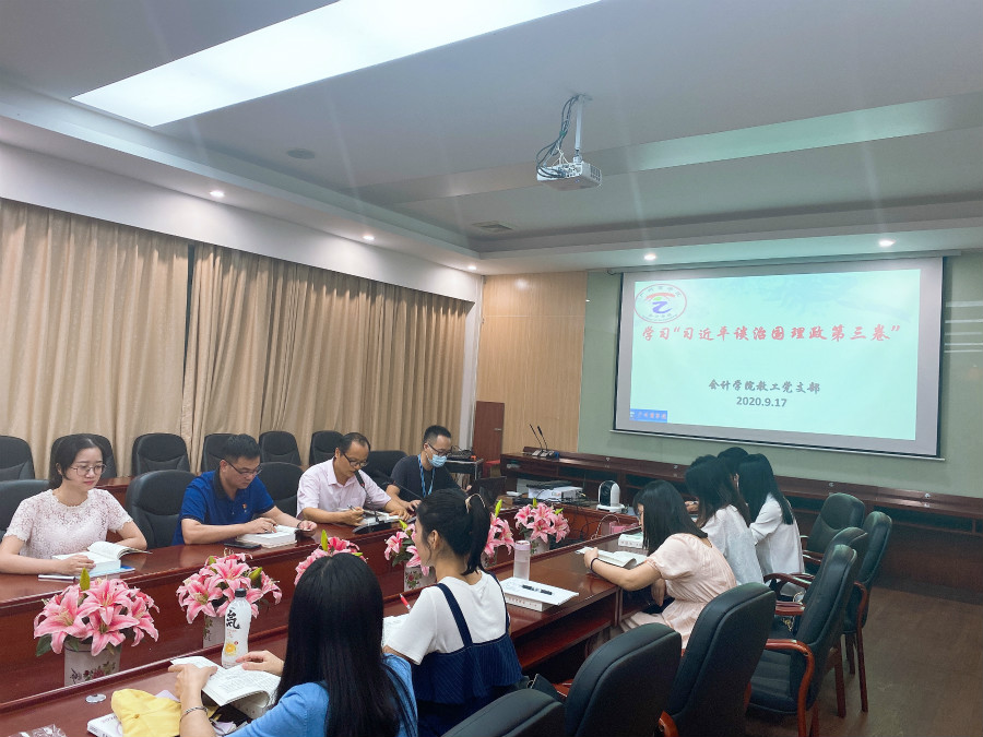 为深入学习贯彻《习近平谈治国理政》第三卷,根据《中共广东省委关于认真学习宣传贯彻〈习近平谈治国理政〉第三卷的通知》、《中共广东省委教育工委关于开展〈习近平谈治国理政〉第三卷学习宣传贯彻工作的通知》等文件要求,星空XK官网教工党支部于9月17日下午四点在二政208召开全体会议,围绕《习近平谈治国理政》第三卷开展集体学习研讨。会议由党支部书记陈德余主持,党总支书记钟远辉和全体教师党员出席了会议,钟远辉、缑毛生等同志作了重点发言。