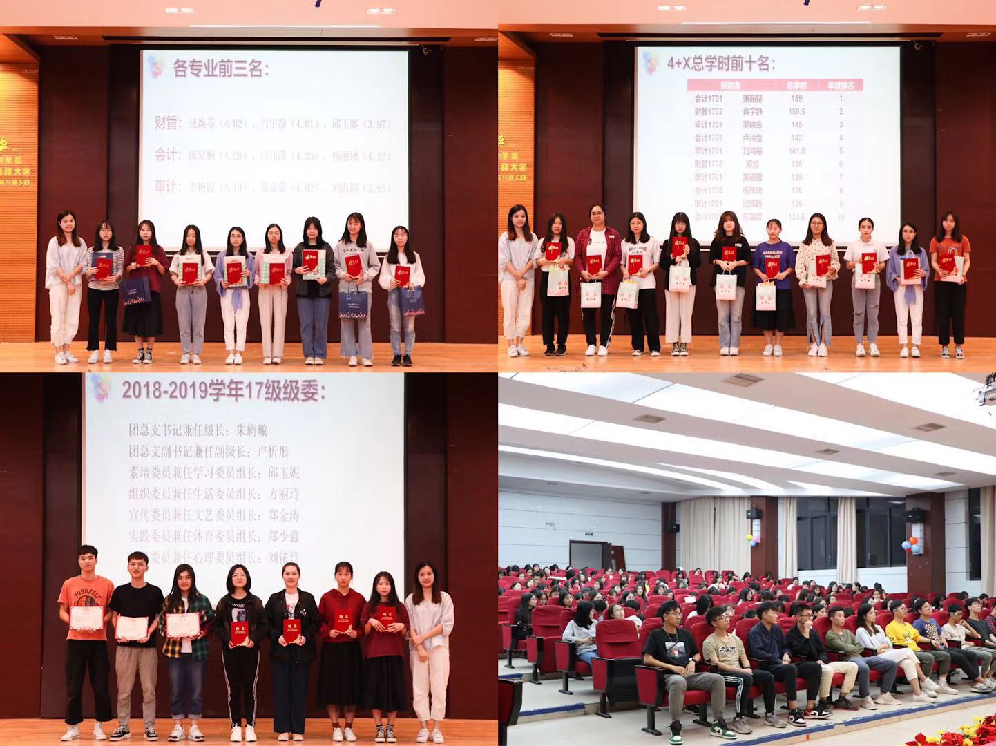 为了表彰优秀,树立引领作用,大会还对年级各专业成绩排名前三以及上学年“4+X”学生综合素质培养学时累计前10名的同学进行表彰。随后,也为2018-2019学年年级级委颁发了聘书。