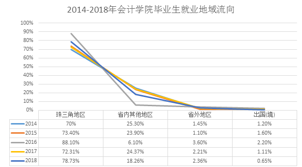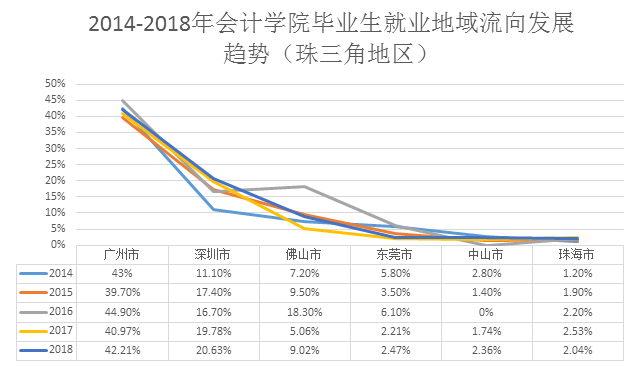 图1-4 2014-2018年星空XK官网毕业生就业地域流向发展趋势(珠三角地区)